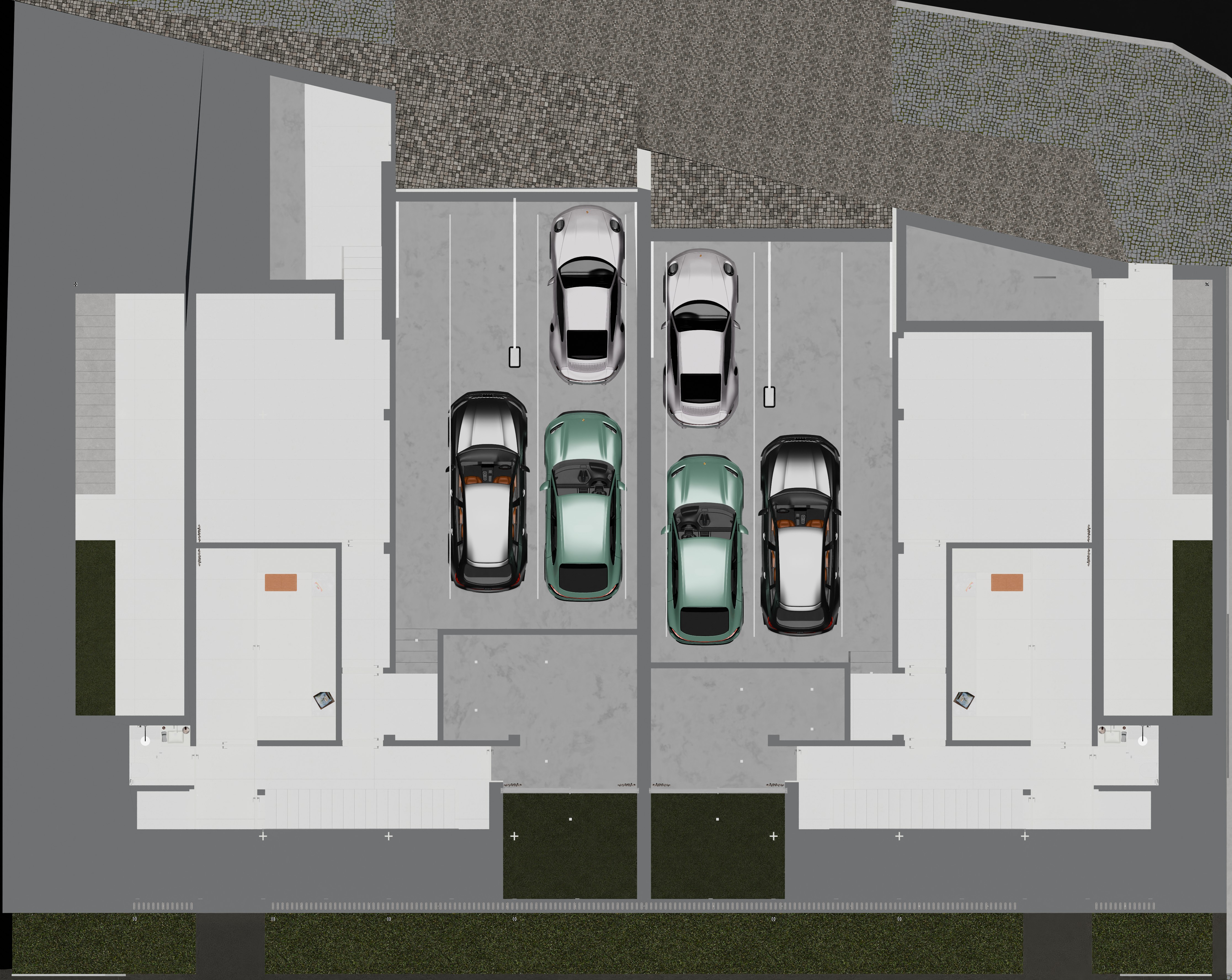 Duas amplíssimas moradias V4 com orientação este-oeste, jardins privados generosos, piscinas exclusivas e deslumbrantes vistas para o mar ao pôr do sol.
